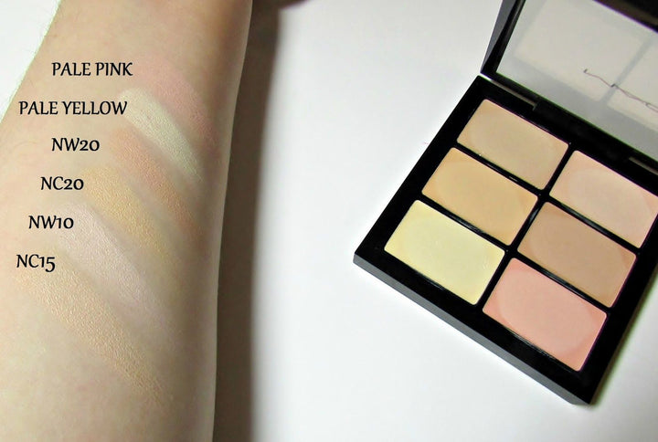 This concealer palette helps correct skin tones, conceal dark circles, blemishes and tattoos.