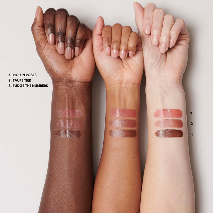 Each lipstick adds a sheer wash of high-shine colour to the lips, while delivering immediate and long-lasting hydration with a blend of jojoba, coconut, raspberry seed and olive oil extracts. Designed to be featherlight on the lips, the trio promises a smooth, luxurious feel.
